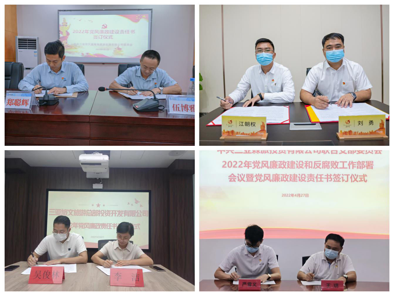 为深入推进党风廉政建设和反腐败工作,落实党风廉政建设责任制,4月以来,三亚旅文集团下属各基层党组织、各成员企业紧紧围绕集团党委党风廉政建设和反腐败工作部署,陆续召开2022年党风廉政建设专题会议,层层签订《党风廉政建设责任书》,进一步增强集团党员干部的勤廉意识,筑牢基层党组织战斗堡垒,为集团高质量开展给予坚强的政治保障。